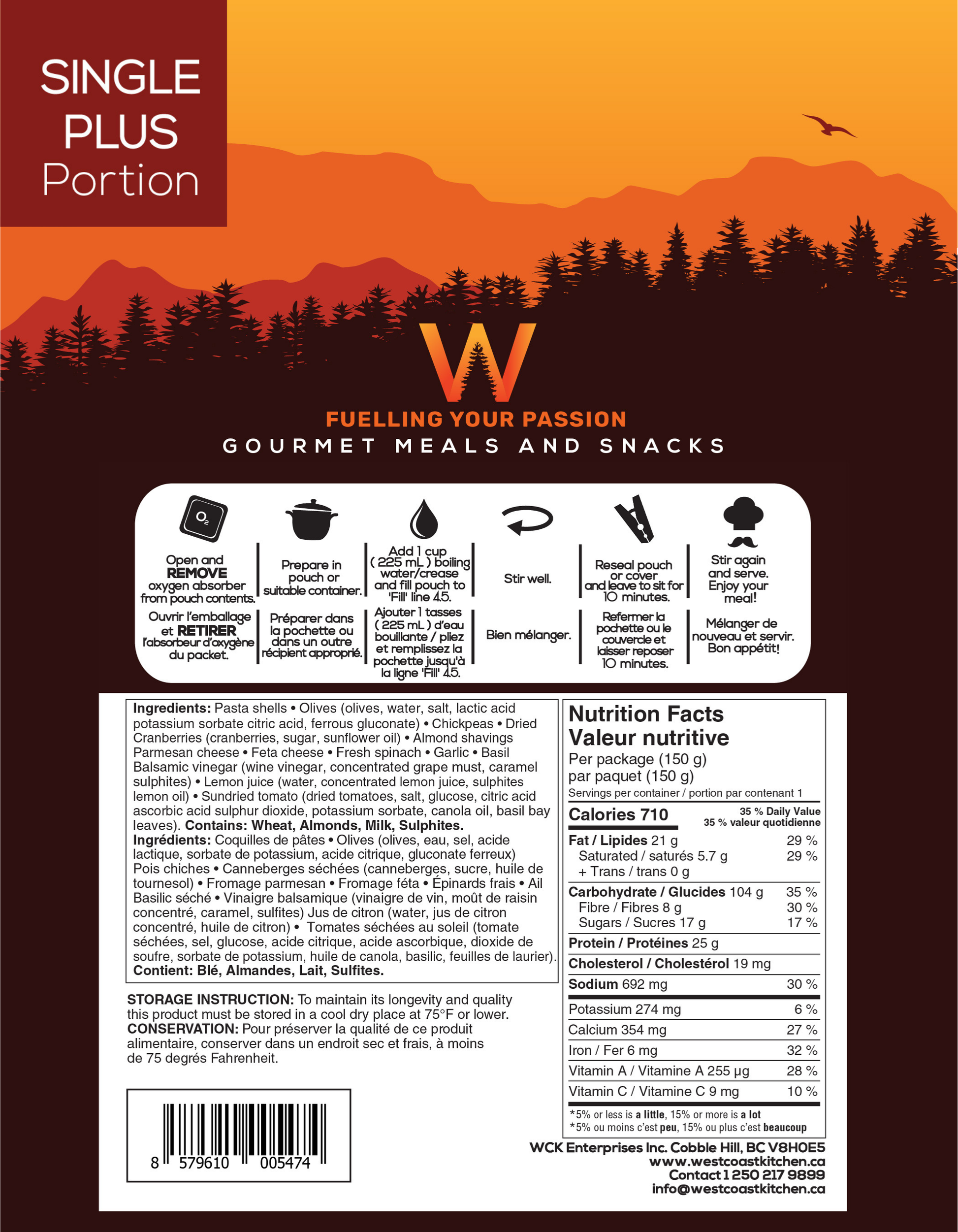 Single-Plus Portion: 150 grams, and 710 calories